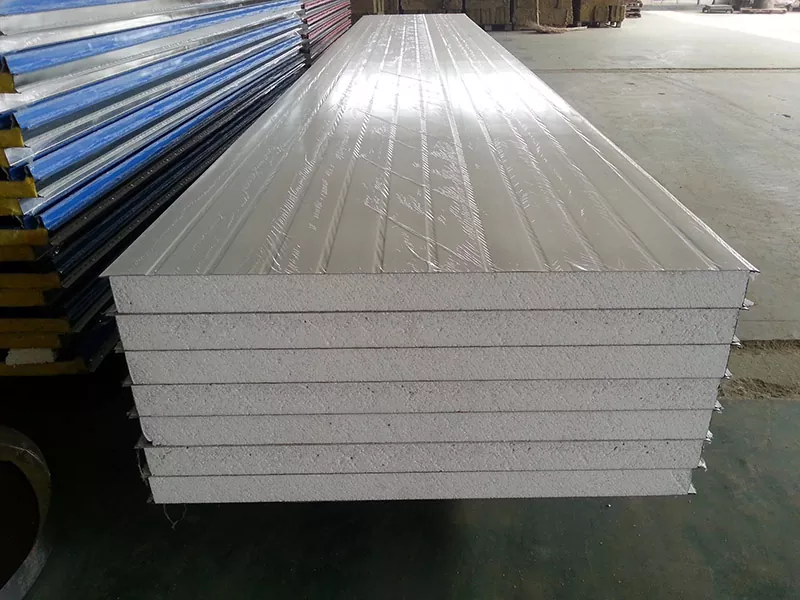 ಇಪಿಎಸ್ ಸ್ಯಾಂಡ್‌ವಿಚ್ ಪ್ಯಾನೆಲ್ ಎರಡು ಹೊರ ಪದರಗಳಿಂದ ಕೂಡಿದೆ, ಸಾಮಾನ್ಯವಾಗಿ ಉಕ್ಕು ಅಥವಾ ಅಲ್ಯೂಮಿನಿಯಂನಿಂದ ಮಾಡಲ್ಪಟ್ಟಿದೆ, ಅದು ಇಪಿಎಸ್ ಕೋರ್ ಅನ್ನು ಸ್ಯಾಂಡ್‌ವಿಚ್ ಮಾಡುತ್ತದೆ. ಲೋಹದ ಪದರಗಳು ಶಕ್ತಿ ಮತ್ತು ಬಾಳಿಕೆಗಳನ್ನು ಒದಗಿಸುತ್ತವೆ, ಇಪಿಎಸ್ ಕೋರ್ ಅನ್ನು ಹಾನಿಯಿಂದ ರಕ್ಷಿಸುತ್ತದೆ ಮತ್ತು ಫಲಕದ ರಚನಾತ್ಮಕ ಸಮಗ್ರತೆಯನ್ನು ಖಾತ್ರಿಪಡಿಸುತ್ತದೆ. EPS ಕೋರ್ ಮತ್ತು ಲೋಹದ ಪದರಗಳ ಸಂಯೋಜನೆಯು ಬಲವಾದ, ಹಗುರವಾದ ಮತ್ತು ಶಕ್ತಿ-ಸಮರ್ಥ ಪ್ಯಾನೆಲ್ ಅನ್ನು ಸ್ಥಾಪಿಸಲು ಮತ್ತು ನಿರ್ವಹಿಸಲು ಸುಲಭವಾಗಿದೆ.