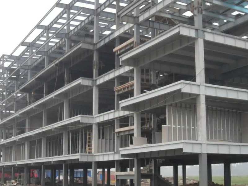 ● ಕ್ಲಾಡಿಂಗ್ ಮತ್ತು ಫಿನಿಶ್‌ಗಳು: ಉಕ್ಕಿನ ಚೌಕಟ್ಟು ಪೂರ್ಣಗೊಂಡ ನಂತರ, ಕಟ್ಟಡವನ್ನು ಮುಚ್ಚಲು ಹೊರಭಾಗಕ್ಕೆ (ಲೋಹದ ಹಾಳೆಗಳು, ಇನ್ಸುಲೇಟೆಡ್ ಪ್ಯಾನೆಲ್‌ಗಳು ಅಥವಾ ಇಟ್ಟಿಗೆಗಳಂತಹ) ಹೊದಿಕೆಯ ವಸ್ತುಗಳನ್ನು ಜೋಡಿಸಲಾಗುತ್ತದೆ. ಗೋಡೆಗಳು, ಛಾವಣಿಗಳು ಮತ್ತು ನೆಲಹಾಸುಗಳಂತಹ ಆಂತರಿಕ ಪೂರ್ಣಗೊಳಿಸುವಿಕೆಗಳನ್ನು ಸಹ ಸ್ಥಾಪಿಸಲಾಗಿದೆ.