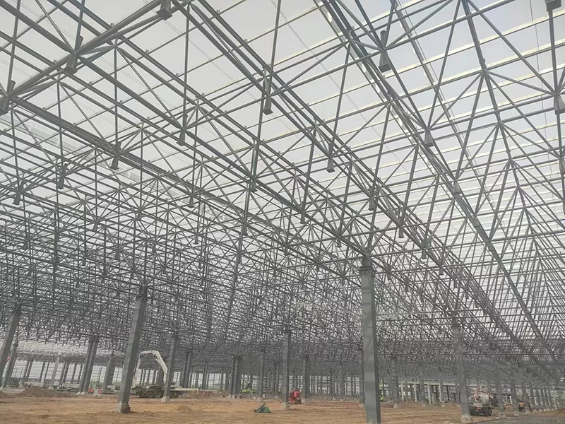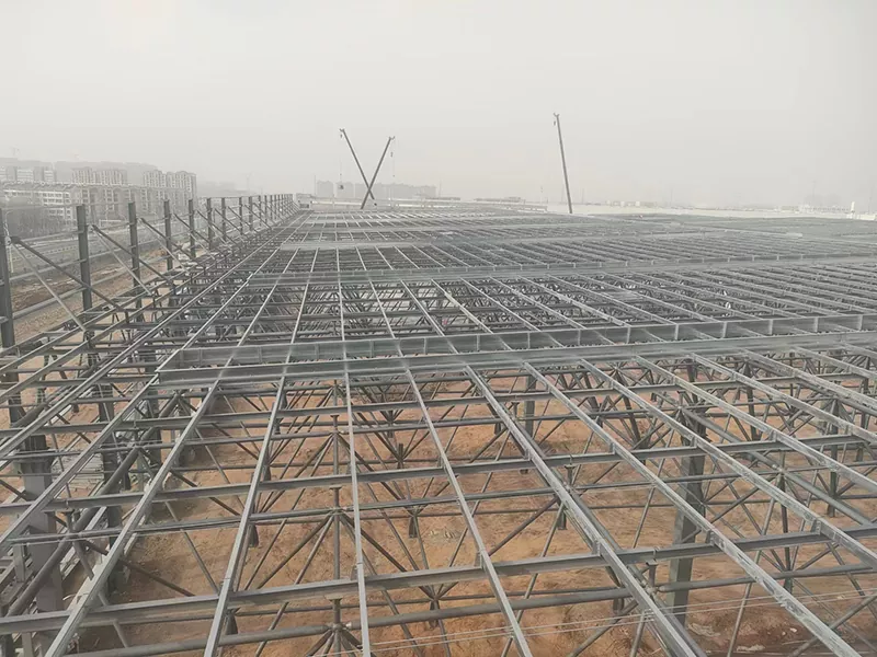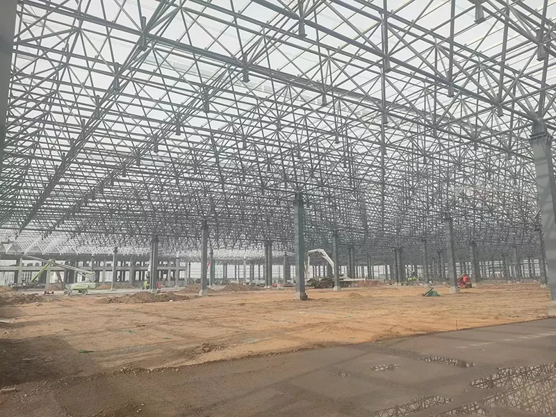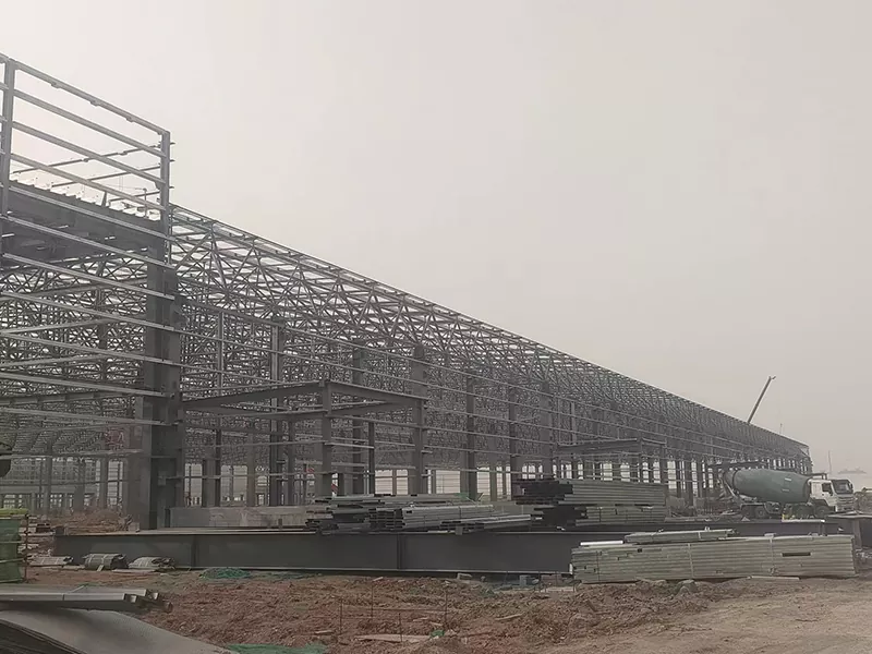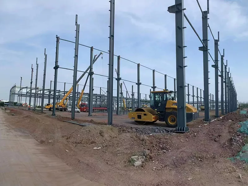 ಉಕ್ಕಿನ ಚೌಕಟ್ಟುಗಳು ಗೋದಾಮಿನ ರಚನಾತ್ಮಕ ಬೆನ್ನೆಲುಬಾಗಿ ರೂಪುಗೊಳ್ಳುತ್ತವೆ, ಇದು ಘನ ಮತ್ತು ಸ್ಥಿರವಾದ ಅಡಿಪಾಯವನ್ನು ಒದಗಿಸುತ್ತದೆ. ಈ ಚೌಕಟ್ಟುಗಳನ್ನು ಮೇಲ್ roof ಾವಣಿ ಮತ್ತು ಗೋಡೆಗಳನ್ನು ಬೆಂಬಲಿಸಲು ವಿನ್ಯಾಸಗೊಳಿಸಲಾಗಿದೆ, ಇದು ಇಡೀ ಕಟ್ಟಡದ ರಚನಾತ್ಮಕ ಸಮಗ್ರತೆಯನ್ನು ಖಾತ್ರಿಗೊಳಿಸುತ್ತದೆ. ಉಕ್ಕಿನ ಚೌಕಟ್ಟುಗಳು ಹವಾಮಾನ ಪರಿಸ್ಥಿತಿಗಳು ಮತ್ತು ತುಕ್ಕುಗೆ ಅತ್ಯುತ್ತಮ ಪ್ರತಿರೋಧವನ್ನು ಸಹ ನೀಡುತ್ತವೆ, ಇದು ಗೋದಾಮಿನ ದೀರ್ಘಕಾಲೀನ ಬಾಳಿಕೆ ನೀಡುತ್ತದೆ.