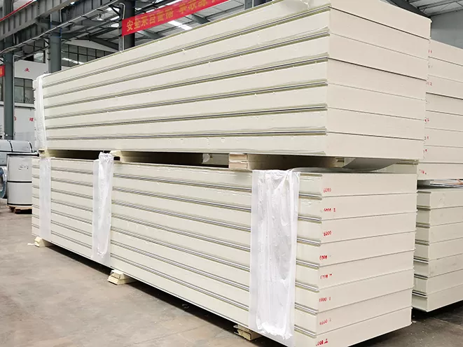 ತ್ವರಿತ ಮತ್ತು ಸುಲಭ ನಿರ್ಮಾಣ: PU ಸ್ಯಾಂಡ್‌ವಿಚ್ ಪ್ಯಾನೆಲ್‌ಗಳನ್ನು ಮೊದಲೇ ತಯಾರಿಸಲಾಗಿದೆ ಮತ್ತು ಪ್ರಮಾಣಿತ ಗಾತ್ರಗಳಲ್ಲಿ ಬರುತ್ತವೆ, ಅವುಗಳನ್ನು ಸ್ಥಾಪಿಸಲು ಸುಲಭವಾಗುತ್ತದೆ. ಇದು ವೇಗವಾಗಿ ನಿರ್ಮಾಣ ಸಮಯವನ್ನು ಅನುಮತಿಸುತ್ತದೆ, ಒಟ್ಟಾರೆ ವೆಚ್ಚ ಮತ್ತು ಯೋಜನೆಯನ್ನು ಪೂರ್ಣಗೊಳಿಸಲು ಬೇಕಾದ ಸಮಯವನ್ನು ಕಡಿಮೆ ಮಾಡುತ್ತದೆ.