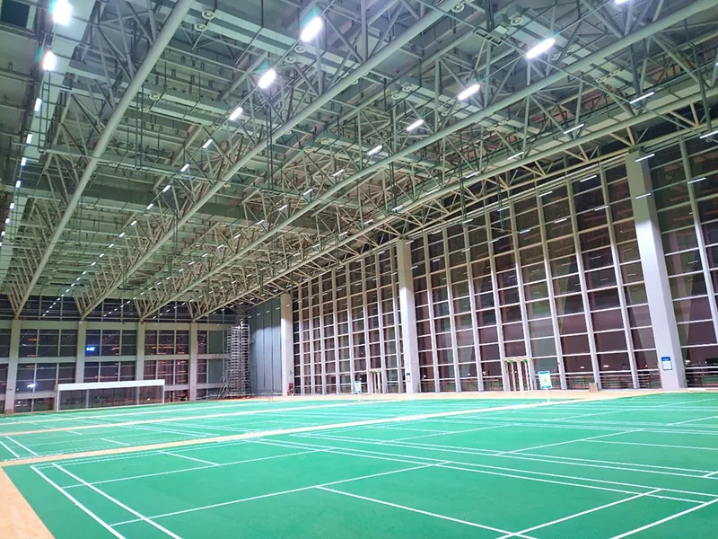 ಆಧುನಿಕ ಕ್ರೀಡಾ ಕಟ್ಟಡಗಳ ಅಭಿವೃದ್ಧಿಯ ಅಡಿಯಲ್ಲಿ, ಉಕ್ಕಿನ ರಚನೆಯ ಬ್ಯಾಡ್ಮಿಂಟನ್ ಹಾಲ್ ಕ್ರಮೇಣ ಬ್ಯಾಡ್ಮಿಂಟನ್ ಸ್ಥಳಗಳ ನಿರ್ಮಾಣದಲ್ಲಿ ಆದ್ಯತೆಯ ರಚನಾತ್ಮಕ ರೂಪವಾಗಿದೆ. ಉಕ್ಕಿನ ಕಿರಣಗಳು ಮತ್ತು ಉಕ್ಕಿನ ಕಾಲಮ್‌ಗಳಿಂದ ಕೂಡಿದ ಮುಖ್ಯ ಚೌಕಟ್ಟು ರಚನಾತ್ಮಕ ಶಕ್ತಿ, ಸೌಂದರ್ಯದ ಪರಿಣಾಮ ಮತ್ತು ಆರ್ಥಿಕ ಕಾರ್ಯಕ್ಷಮತೆಯನ್ನು ಗಣನೆಗೆ ತೆಗೆದುಕೊಳ್ಳುತ್ತದೆ, ವೃತ್ತಿಪರ ಕ್ರೀಡಾ ಸ್ಥಳಗಳ ಮಾನದಂಡಗಳನ್ನು ಪ್ರದರ್ಶಿಸುತ್ತದೆ. ಮುಚ್ಚಿದ ಸ್ಥಳವಾಗಿ, ಬ್ಯಾಡ್ಮಿಂಟನ್ ಹಾಲ್ ಉತ್ತಮ ವಾತಾಯನ ವ್ಯವಸ್ಥೆ ಮತ್ತು ಉಷ್ಣ ನಿರೋಧನ ಪರಿಣಾಮವನ್ನು ಹೊಂದಿರಬೇಕು. ಉಕ್ಕಿನ-ರಚನೆಯ ಬ್ಯಾಡ್ಮಿಂಟನ್ ಹಾಲ್ ಹೆಚ್ಚು ಪರಿಸರ ಸ್ನೇಹಿ ಮತ್ತು ಉಷ್ಣ ನಿರೋಧನ ಗೋಡೆಯ ವಸ್ತುಗಳನ್ನು ಬಳಸಬಹುದು ಮತ್ತು ವಾತಾಯನ ವ್ಯವಸ್ಥೆಗೆ ವಿದ್ಯುತ್ ಉತ್ಪಾದಿಸಲು ಛಾವಣಿಯ ಮೇಲೆ ಸೌರ ಫಲಕಗಳನ್ನು ಅಳವಡಿಸಬಹುದು.